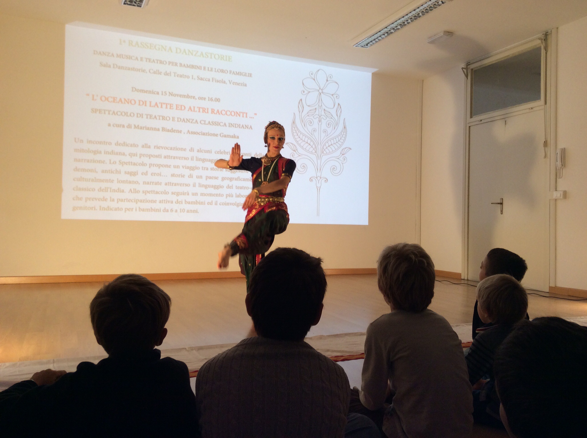 Un incontro dedicato alla rievocazione di alcuni celebri racconti della mitologia indiana, qui proposti attraverso il linguaggio della danza e della narrazione. Lo Spettacolo propone un viaggio tra storie suggestive di dèi, demoni, antichi saggi ed eroi… storie di un paese geograficamente e culturalmente lontano, narrate attraverso il linguaggio del teatro-danza classico dell’India. Dopo lo spettacolo un laboratorio attivo con la partecipazione attiva dei bambini ed il coinvolgimento dei genitori.